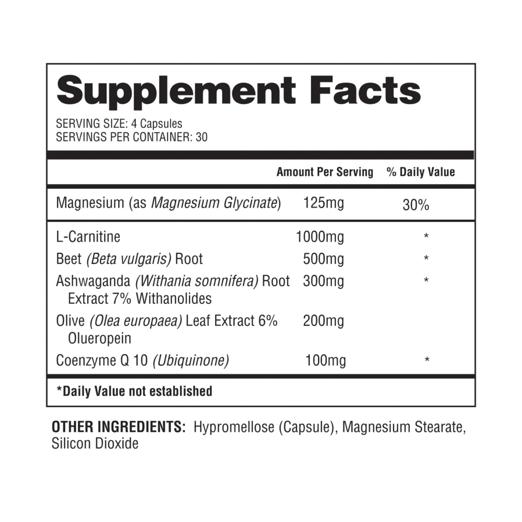Inside each serving, you’ll find ashwagandha, olive leaf extract, magnesium, l-carnitine, CoQ10, and beet root – six key nutrients chosen for their ability to support healthy blood pressure, circulation, and overall heart function.